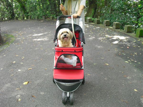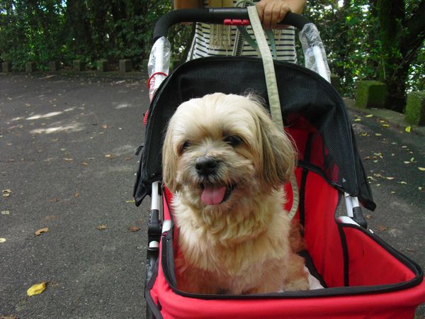 ラーがバギーにちゃんと乗ってくれるのか不安でしたが、まずは気に入ってるみたい。乗っている時はいい子してるし、降りたくなったら立ち上がって合図してくれるので順調に散歩できている。ただし、バギーが必要になったことは寂しくは思うけど。