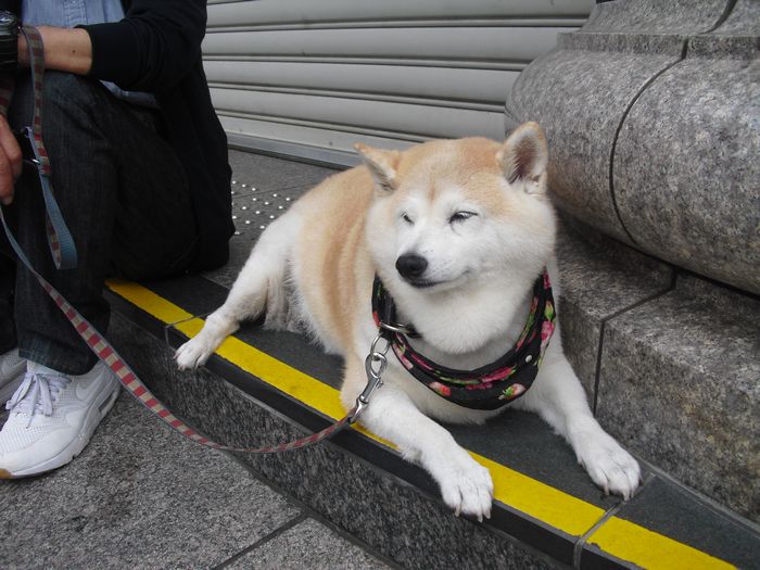 早朝の散歩では、シャッターの降りた三越でウインドウショッピングをして、日銀に立ち寄りラーPMにはお金がないことを訴え、雨宿りしていた女の子のワンコ「ゆずちゃん」(12歳)に元気でねと声かけ。なんとも有意義なお散歩でございました。(笑)