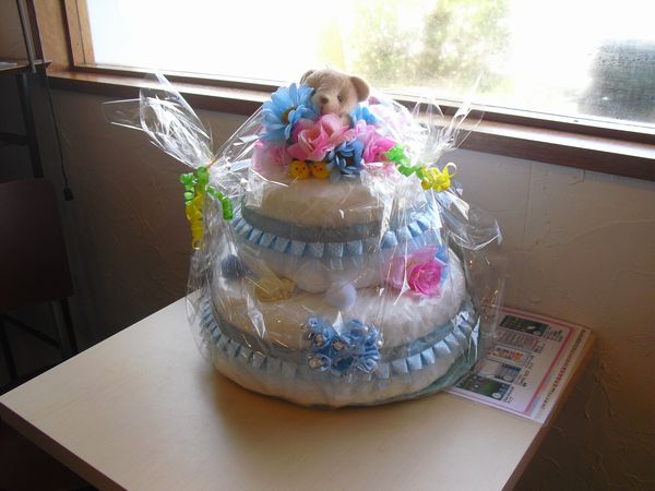 あっちゃんに聞くと「だから、Mizさんから紙オムツのケーキが届いたのよ。」とのこと。それでも発想の貧困なラーPMには「(メ・ん・)?」状態で、「オムツのケーキ?ケーキのオムツ??」とやっぱり頭の中は混乱するのでありました。(苦笑)
