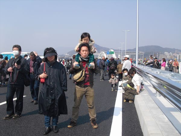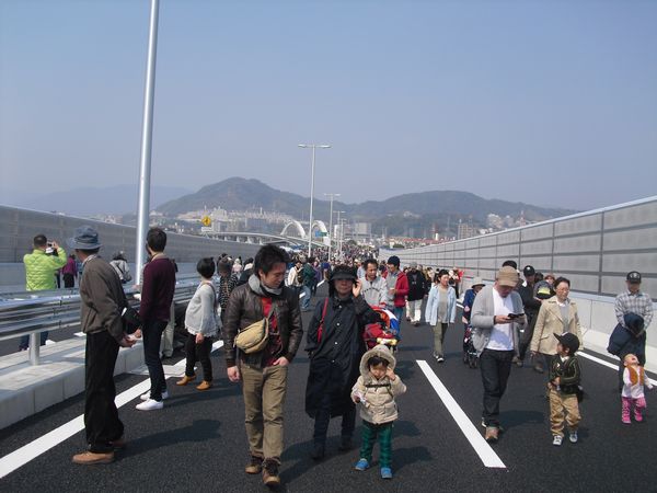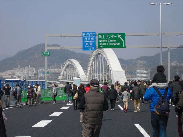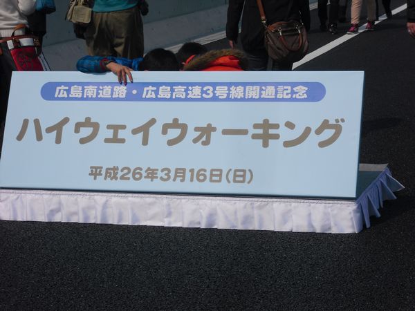 本日16日(日)、高速3号線・広島南道路の部分開通イベントがあったので、あっちゃん、娘婿の天誠くんそして孫のいず君と行ってきました。橋や道路が開通する直前によくある「ウォーキングイベント」だったのですが、吉島~商工センター間の高速道路からの風景を楽しんできました。
