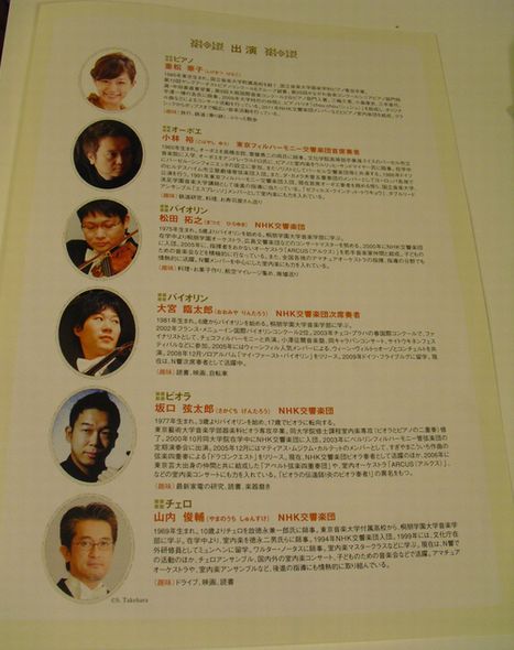 そんな忙しい中、仕事を終えて何とか行ったNHKのクラシックコンサートで驚いたことがありました。出演メンバーの中に意外な人を発見。5月に「ライブジューク」で出演された「ピアノトリオchou-chou(シュシュ)」という東京から来た女性3名の音楽ユニットのメンバーの一人が今回出演されていたのです。ピアニスト重松華子さん。