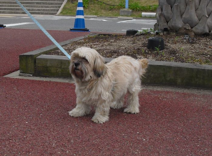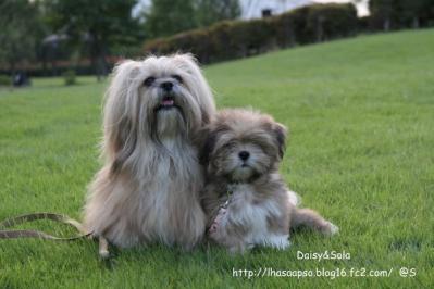 その日の夕方のラーたちのお散歩は、平和公園へ。この近くに住んでいるラサ友さんのランディーくんとメイくんたちはいいよね、こんな広い公園を毎日歩けるなんて。時間がある時にまた来ようね、ラーくん。^^