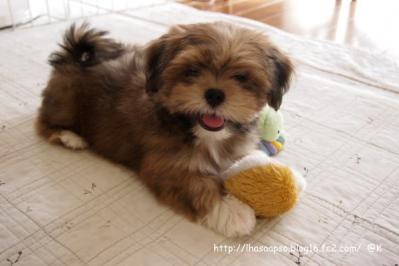 まずは、デイジー家の新しい家族「ソラちゃん」。ある日、電話で話していて「新しいラサが来る予定・・・」の話しを聞いて思わず飛び上がってしまいました。(笑)とても元気で活発な女の子「ソラちゃん」。いつ会えるかなぁ・・・ん~、ここはラーPMが頑張って関東進出いたしますか!