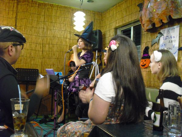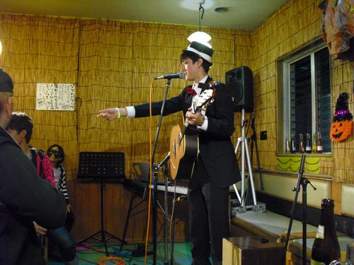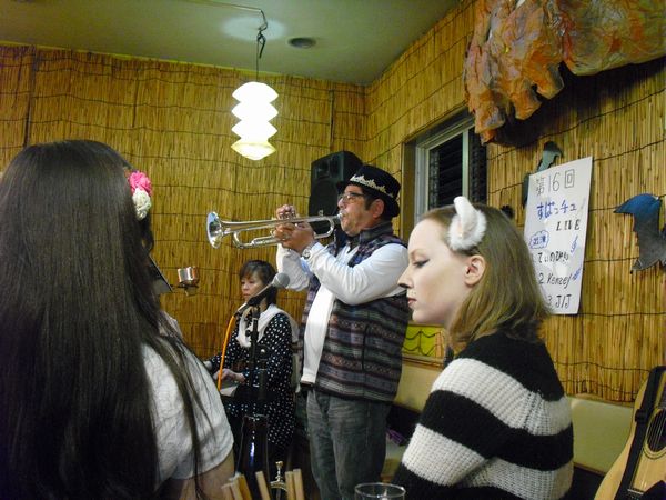 19日(金)の夜、お好み焼き屋さん(あかとんぼ)であった「すぱっチュ ライブ」という催しに行ってみました。お世話になっているお友だちのグループが出演するということで。地元広島で活動している3組の音楽好きの演奏をお好み焼きとセットにしたライブでした。