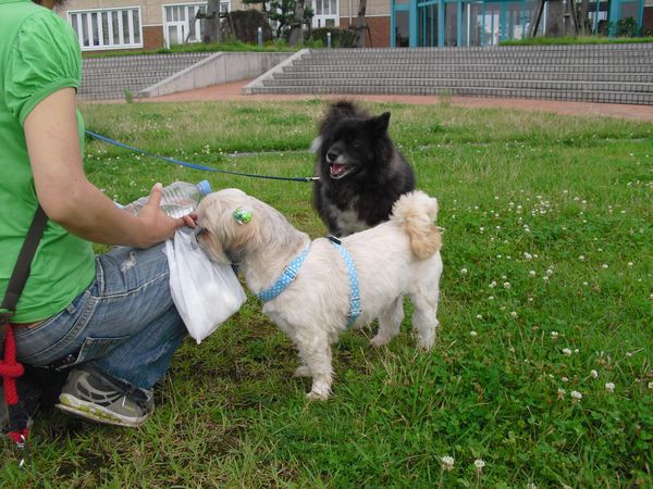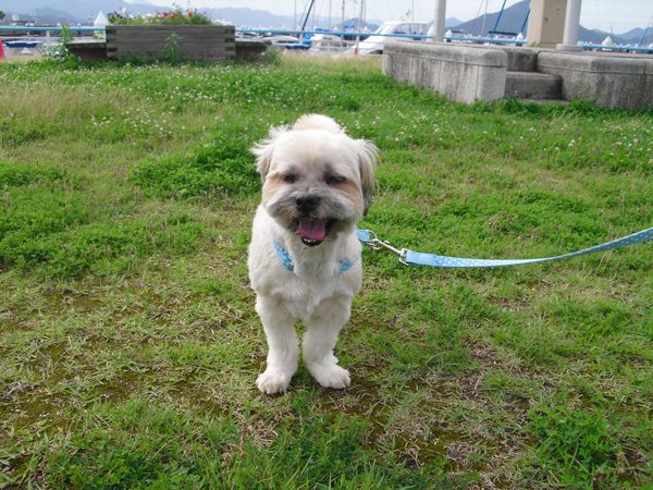 本日のラーたちのお散歩は、朝夕ともにと~ぜんマリーナ。朝はお友だちのカールちゃんと待ち合わせして一緒に散歩しました。水には強いカールちゃんだから雨のお散歩も平気だと思うけど、この蒸し暑さには気をつけてね。今日はどうもありがとう。また、ラーとミッキーと一緒に歩いてくださいね。