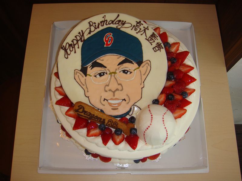 先日の17日(火)、プロ野球中日ドラゴンズの監督が71歳の誕生日を迎えました。たまたま、広島で試合があるとのことで日刊スポーツ、デイリースポーツ他、東海地区報道関係各社(12社共同)より、高木監督のバースディ・ケーキの注文が「クッキー屋サリー」にありました。