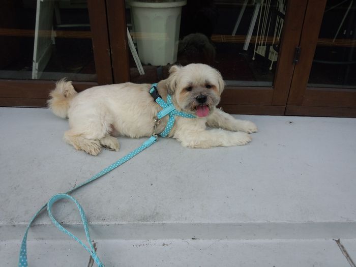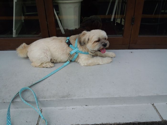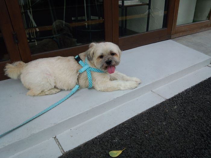 今朝のラーのお散歩は、「サリー」の近くを歩きました。帰りにお店の前で、ラーがベッタリと・・・下がヒンヤリと気持ちよかったのか、それともいい香りがしたからか?歩いても動かなくなっても可愛いラーじゃねぇ~~。(完全親ばか、ラーばか、ラサ狂い爆)