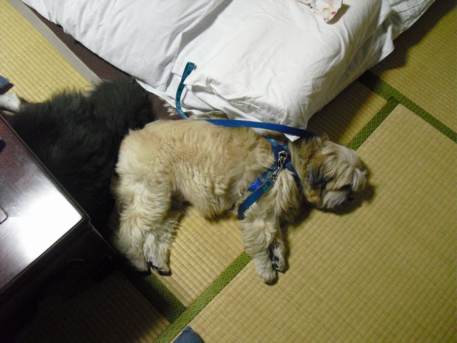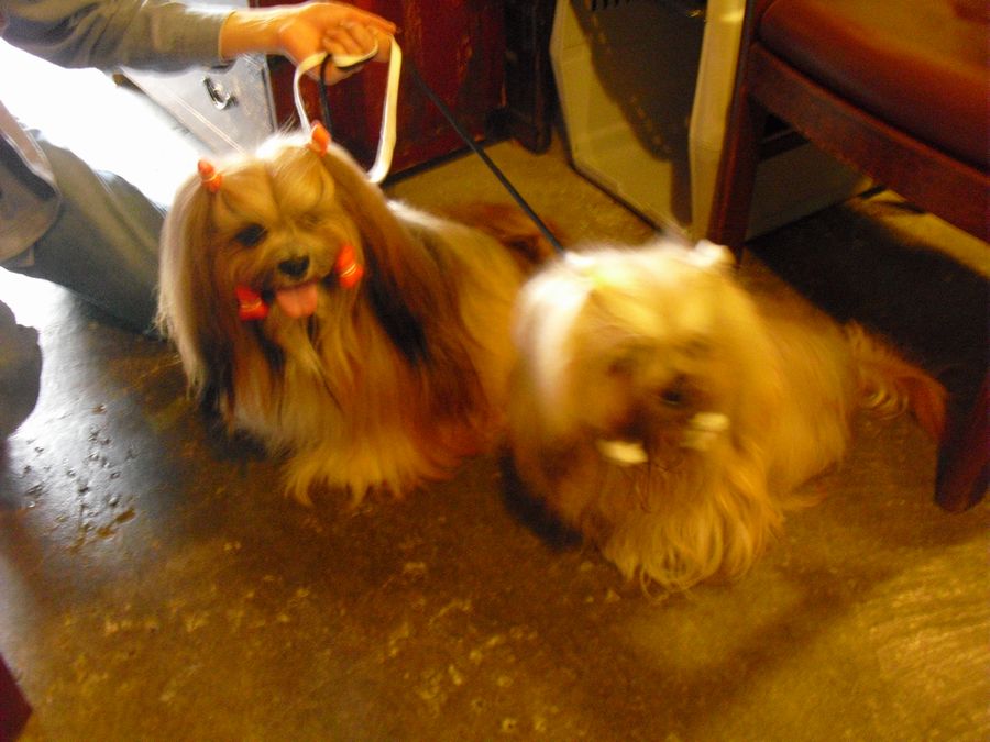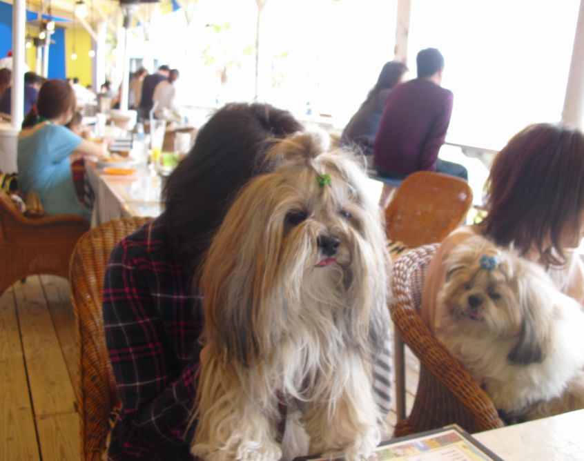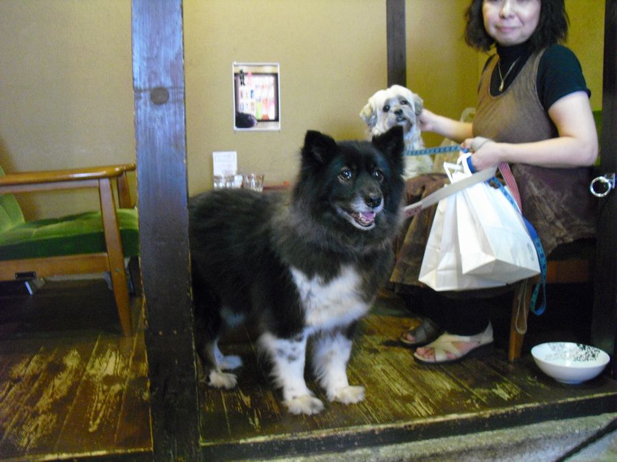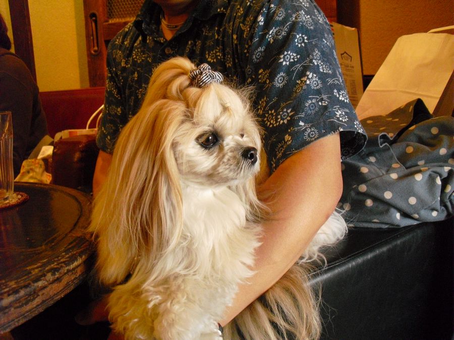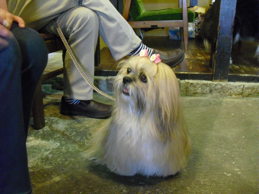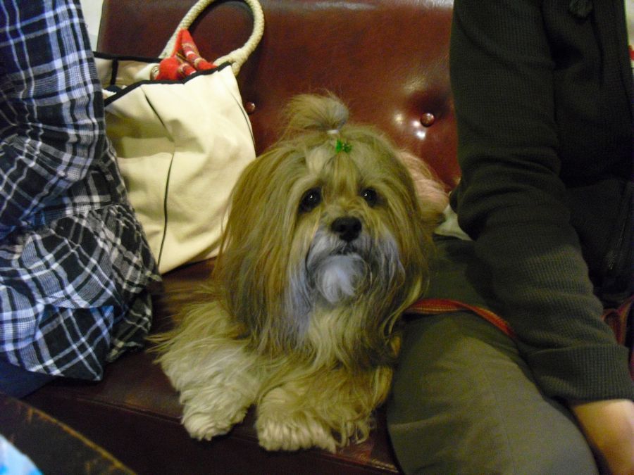 そして、ラサでない黒いワンワン(経験を重ねて、お店でもみんなと一緒に居ることができるようになったね。昔のオフ会では、恐怖に怯えた表情ばかりだったのに。えらいよ、ミッキー)