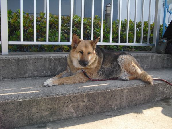 そのマリーナホップにて、先週の日曜日の朝のお散歩で久しぶりにお友だちのカールちゃん(シェパードの雑種、女の子)に会いました。いつ以来かなぁ、ほんと久しぶり。