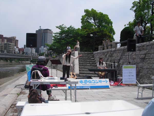 ランチの後、平和公園横のでの「水辺のコンサート」へ。Mebius出演のため。一昨日、Mebiusの真実ちゃんの誕生日でした。昨年に続いてピアノのケーキをプレゼント。もちろん「クッキー屋サリー」のもの。今年はグランドピアノへと進化。(驚)やるねぇ~。