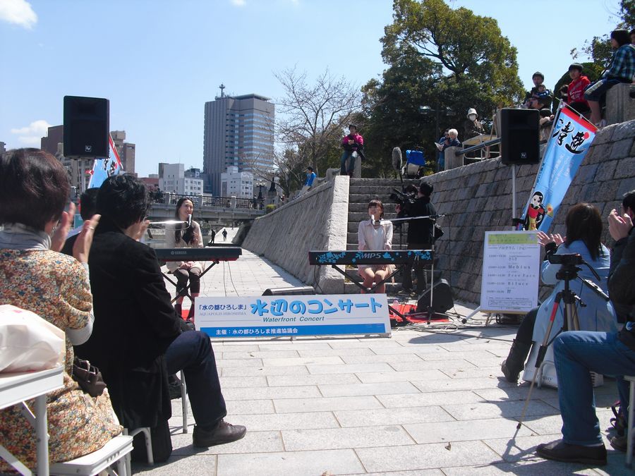 水辺のコンサート会場からもずーっと原爆ドームを見つめていましたが、景色の中にどうしようもない寂しさを感じました。あっちゃんの笑顔と寂しい景色を同時に見るという不思議な4月1日の日曜日でした。^^