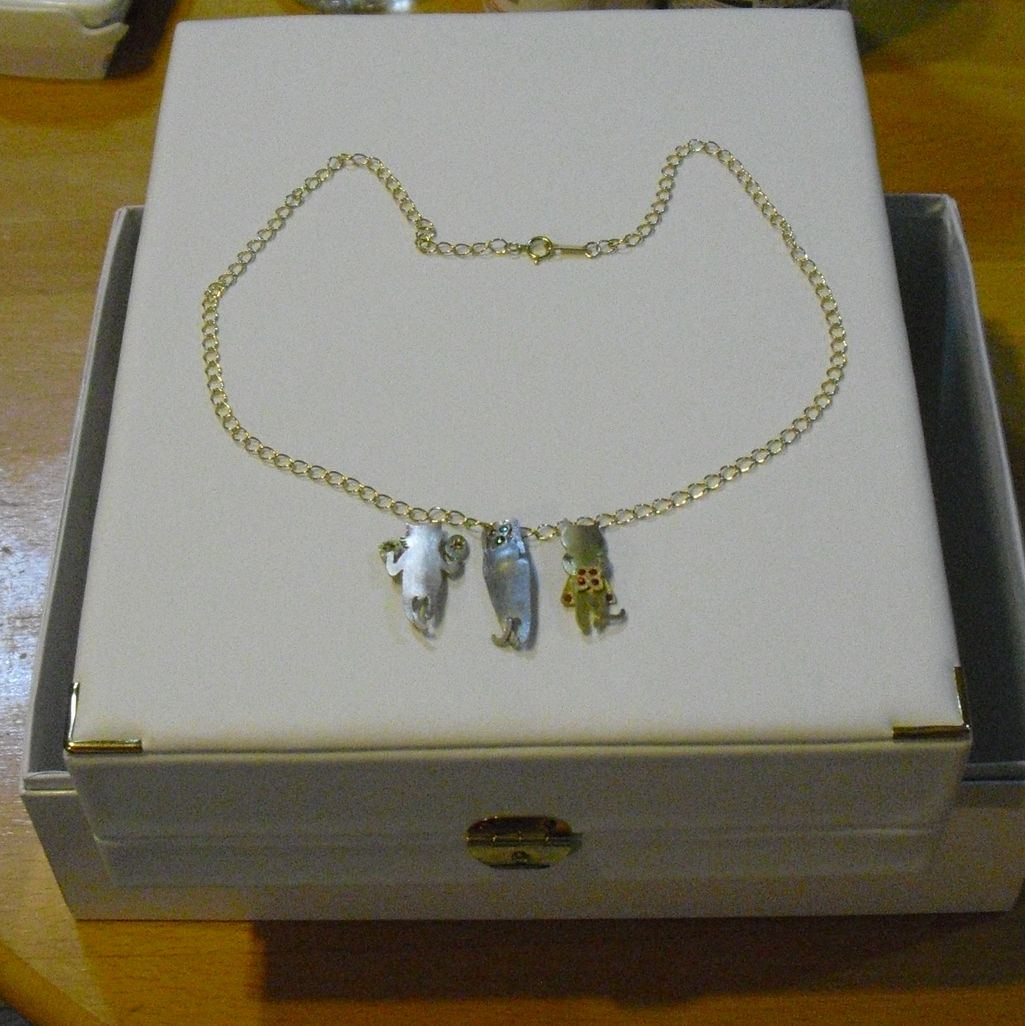 ピンクゴールド・プラチナ・イエローゴールドのネコちゃんたちにそれぞれダイヤモンドやルビーを入れていただき、本当にもったいないくらいのジュエリー。それぞれ単体でも使用できるので、千春夫婦とあっちゃんがそれぞれのネコちゃんを連れ歩くことになっています。誰が最初に迷子になるのでしょうかねぇ。(苦笑)
