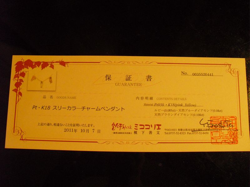 その素晴らしいミココリエさんの作品、アニバーサリー・ジュエリーが8日に届いたのです。私たちはその出来栄えに感動しとても嬉しく思いましたが、あいにくの金相場高騰の中での作成となったゆえに、ミココリエさんにはご迷惑をかけた次第となりました。ありがとうございましたと同時に、すみませんでした。