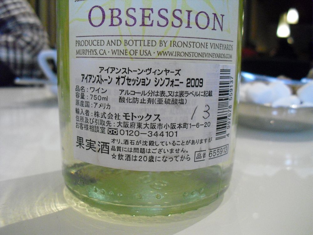 先週の土曜日、大阪で見つけたお気に入りワインを手に入れました。名前は「アイアンストーン オブセッション」