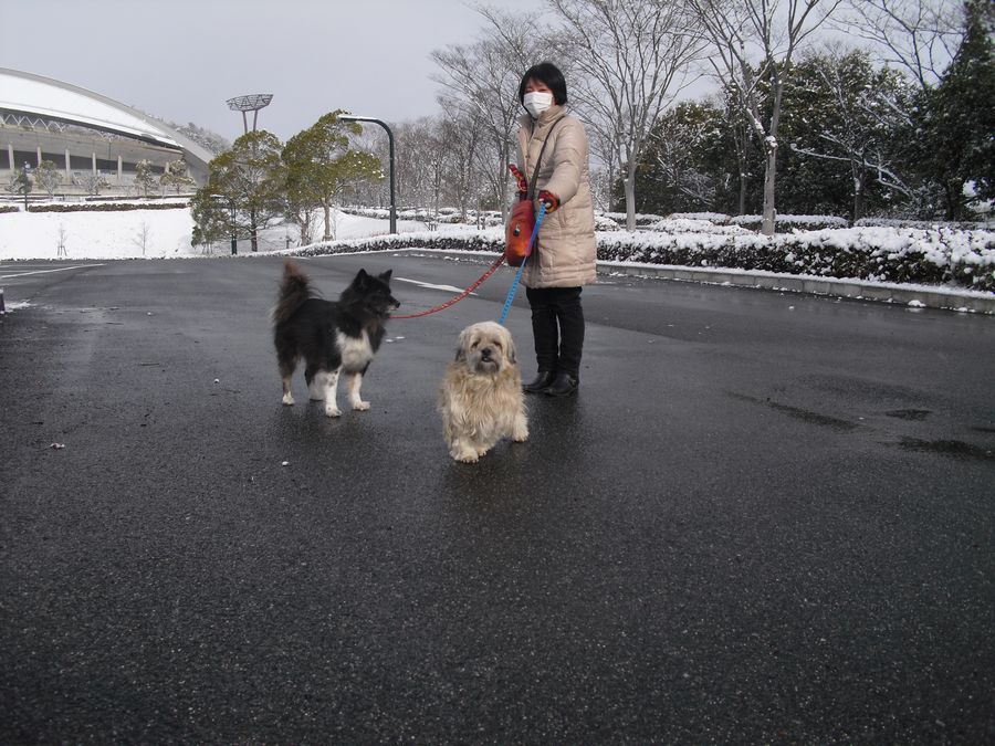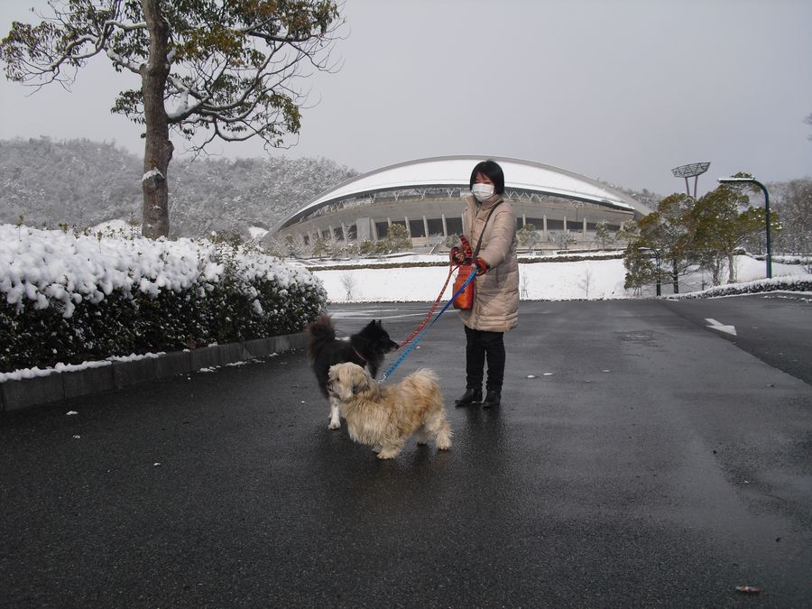今朝のラーとミッキーのお散歩は、車内でレミオロメンの「粉雪」を熱唱しながら雪の広島ビッグアーチへ。私たちがビッグアーチへ行くのは珍しいこと。理由は昨夜のサッカーとは関係ないのですが、ここ広島ビッグアーチは何故かアジアカップ初制覇の場所。偶然ですなぁ。(笑)