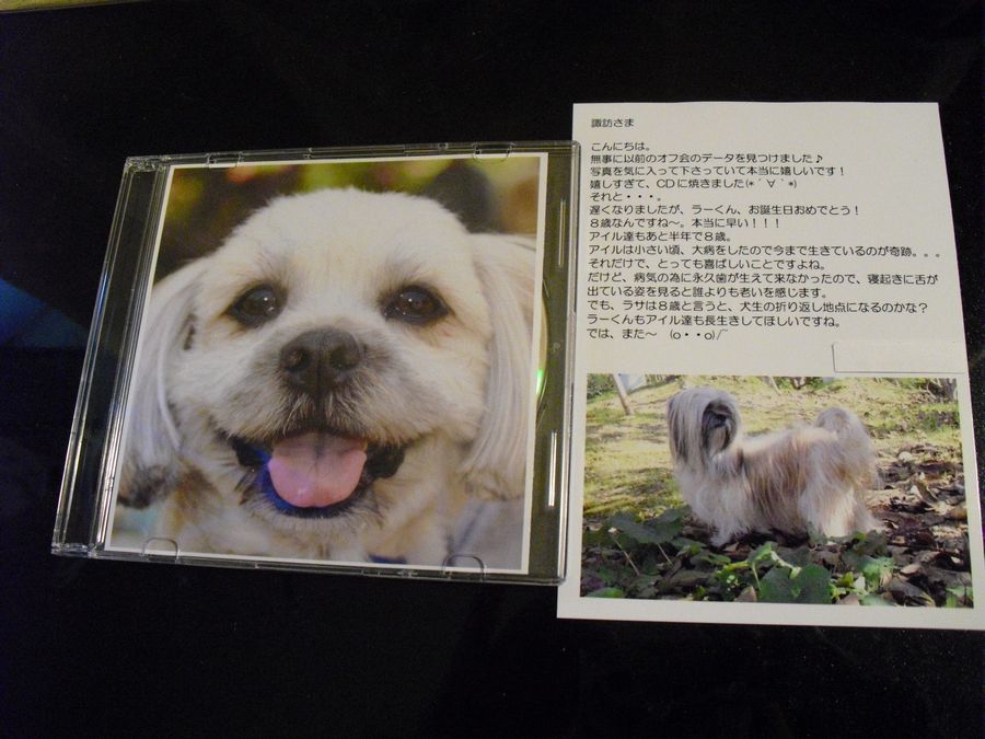 先日、ラサ友さんのmomoさんに2006年大阪でのオフ会の写真データを送っていただくようお願いをしたところ、当時のラーの写真を表紙にしたCDが早速送られて来ました。突然の無理なお願いにもかかわらず、お忙しい中すぐに送ってくださるなんて感謝感謝です。momoさん本当にありがとうございました。