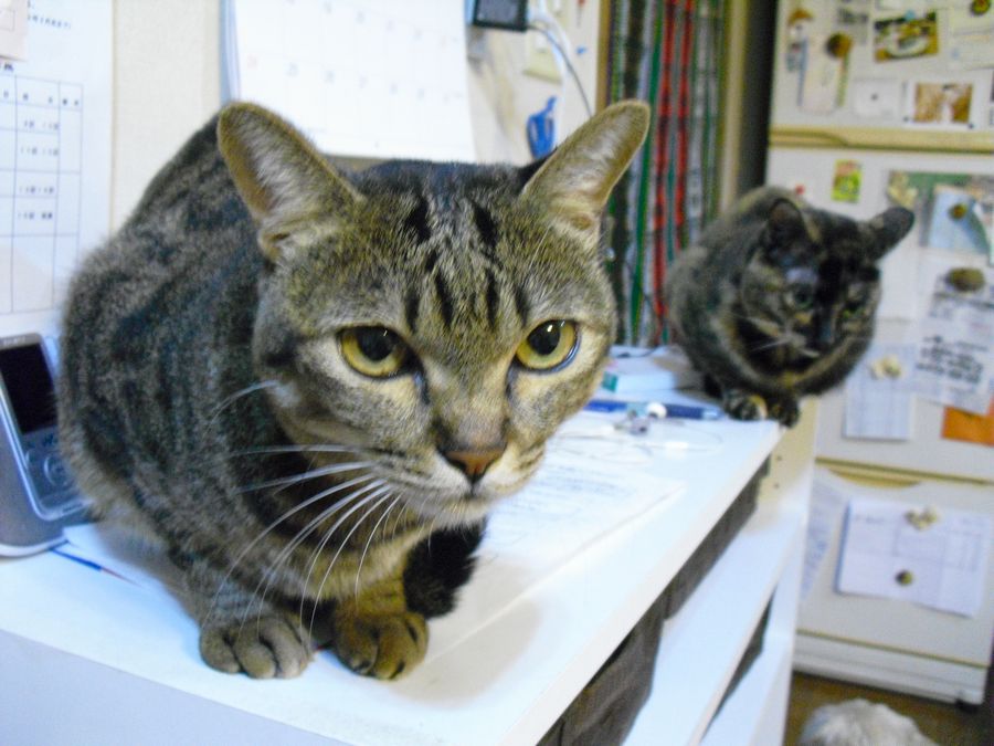 同じく昨日の朝だけど、ラーも「足が痛いよ~」と右前足を浮かせた状態でラーPMのところへやってきた。「ラーちゃん、どうしたの?足が痛いの???あっちゃ~~ん、ラーがたいへ~ん!!ラーの足が変だよ~!!」ラーの異変に真っ青のラーPM。「急いで病院へ行かなきゃ。」