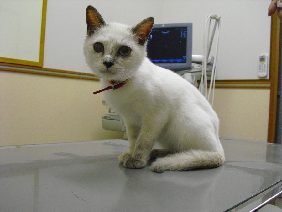 本日、サリーとこのシロちゃんは病院へ行って注射。先日のニューフェースの白い子猫。名前は「白雪」ちゃんだそうです。