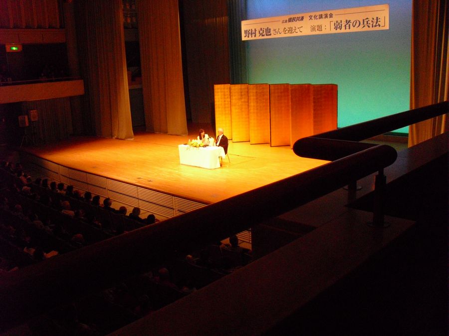 12日(金)夜、国際会議場フェニックスホールにて開かれたプロ野球楽天イーグルス元監督の野村克也さんの講演会に行ってきました。あっちゃんとふたりで。「弱者の兵法」という講演タイトルでしたが、講演というより女性司会者との対談形式での雑談会といった趣でした。ただ、ノムさんを見に行っただけの講演会でした。(苦笑)