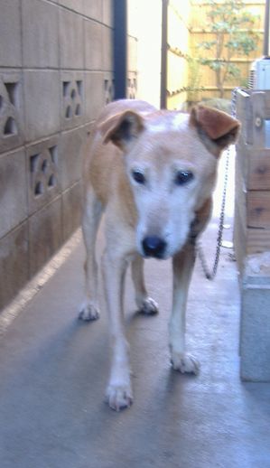 震え止まらずよろける足取りのポロ。でも、猫を見かけると足を踏ん張り追いかける体勢をする。その気持ちでもっとがんばりんさい。(笑)