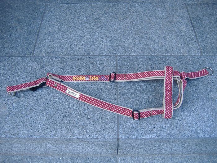 先日「チャーコの家」という、恵まれないワンニャンたちに愛情を注いでくれているお店で、ラーのオリジナルのハーネスとリードのセットを作成していただいた。早速、着用してみると・・・あまり具合がよろしくないようで。あちゃー、まいった。(笑)せっかくネームまで入れていただいたのに。仕方ない、ハーネスは飾って置くしかない!