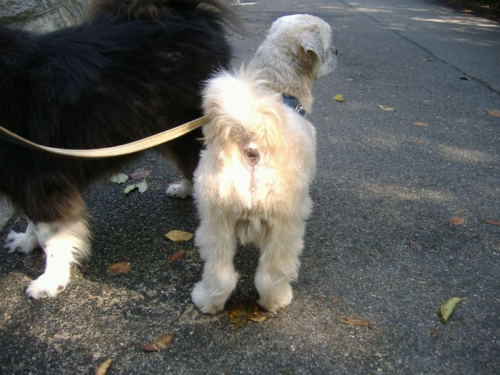 先月の25日(火)、仕事から帰ってラーたちの散歩へ行こうとしていた時、ふと気になりラーのお尻周りを触ってみると・・・「!!!???、何かできてる???」
