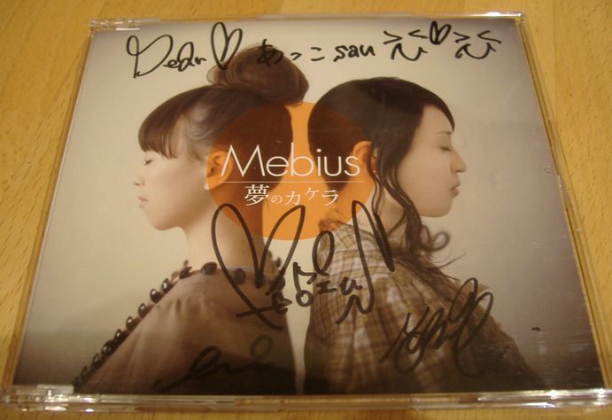 送別会当日、駅前福屋へ到着後少し時間があったので6階のイベント広場に行ってみると何かのイベントが終わったばかりでした。イベント終了後の空いた席に座って休んでいると、すぐ横で若い女の子2人がCDを売っている姿が目に入った。あっちゃんが「メビウス・・・??ねぇ、なっちゃんの友達ってメビウスって言わなかった?」と聞いてくるので、ラーPM曰く「??・・・知らないよ。名前は・・・」「たしか・・・」と、あっちゃん。