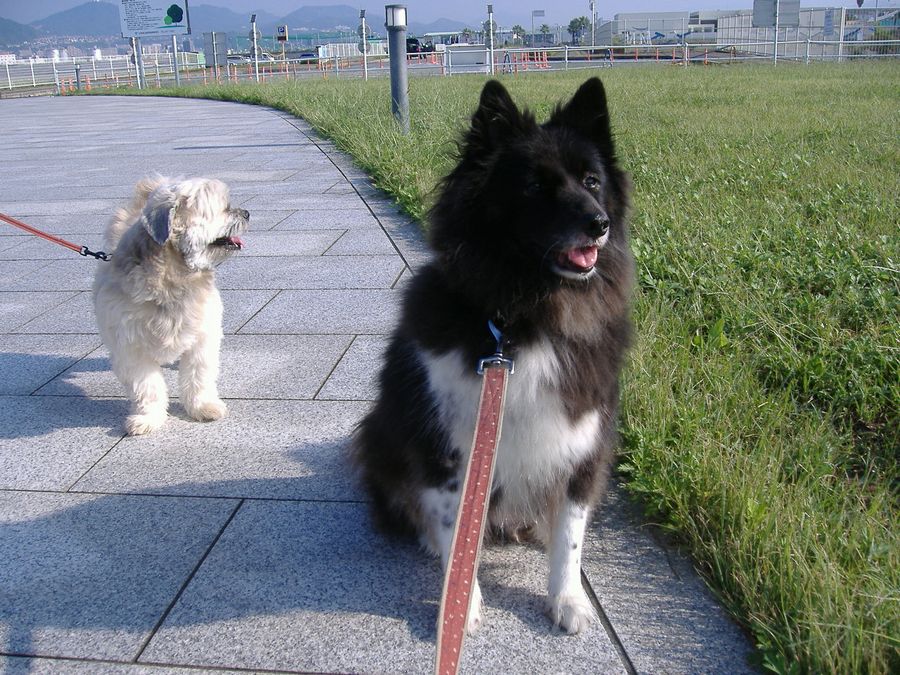 今朝のラーとミッキーのお散歩は、いつものようにマリーナホップ。時々ここで顔を合わせるトイプードルくんとシェパードもどきちゃんが、後からやってきて少しだけお話して帰った。シェパードもどきちゃんの名前はカールちゃん(女の子)。本当のシェパードではないらしく、飼い主さんが沖縄に住んでいた時、捨てられていたのを引き取ったらしい。優しくてとてもいい子。良い人に出会えて幸せだね、カールちゃん。