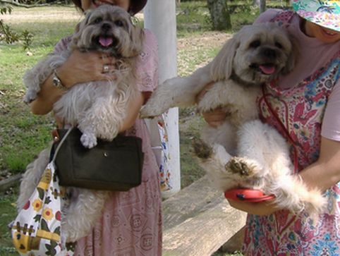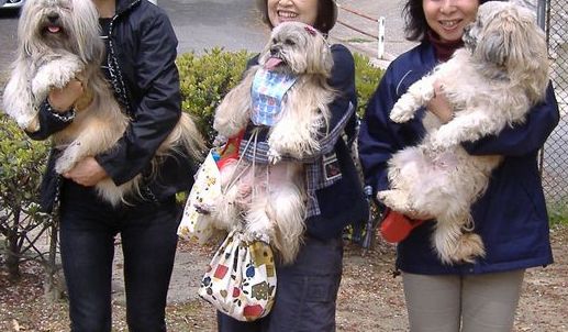 お店の方に聞いてみると、一時預かりの子ということで犬種は不明とのこと。ラサとなると異常な執念を燃やすラーPMとあっちゃんは調査開始。(笑)そのワンちゃんのオーナーさんにお会いするため昼食抜きで頑張ること3時間半。ついにそのワンちゃんとオーナーさんご家族とお会いすることができました。「すみませ~ん、こんにちは~。このワンちゃんがとても気になって。わたしたちが探しているワンちゃんに似ているので。」と言って駆け寄って行くラーPM・・・すると、先方のご主人が「Sさん??」と声をかけられ、ラーPM思わず「???・・・え???・・・Kさんですか?」