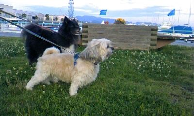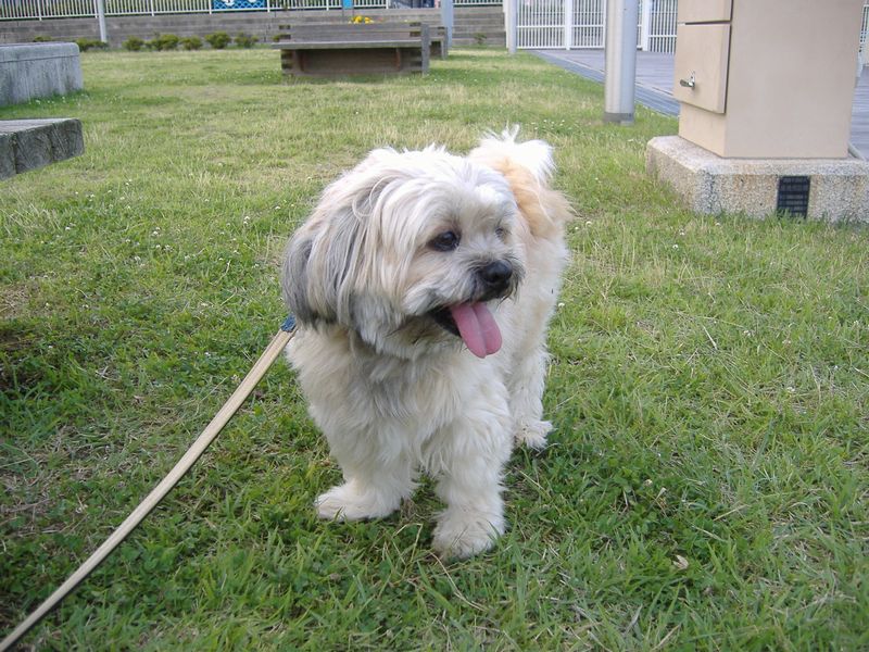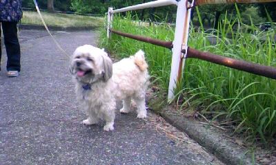 何のことはない、ラサらしきワンちゃんはお友達の「ゴンタくん」だったのです。ラサみたいじゃなく、ラサ・アプソ!(笑)ゴンタままさんが、いつもの散歩スピードと違うペースで歩かれていたことや顔が隠れるほどのサンバイザーを被っておられたこともあって全然わからなかった。ゴンちゃんは近寄ってすぐにわかったけど、ままさんは「噂の娘さんかな?」と思ったくらい。(笑)