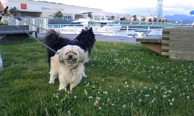 今日のラー&ミッキーは、朝は比治山、夕方はマリーナホップでのお散歩。どこか遠くにラーたちと遊びに行きたいけど、11月頃までは難しいかなあ。せっかくのETC割引も、いまだに恩恵を受けることのできていない我が家。まぁ、渋滞に遭わないだけいいと、良い方に考えておこうか。(笑)