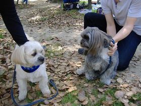 先週の日曜日(15日)の夕方のお散歩に行ったのはミッキーの相性を考えて比治山へ。行った時間は夕方の5時前。この時間に訪れるのはちょっと珍しい。いつものコースを辿って歩いていくその先に、お散歩を終えて帰ろうとしている一匹の白っぽいワンコちゃんと女性が。ラーを連れていたあっちゃんが、近づいてその女性と言葉を交わす。