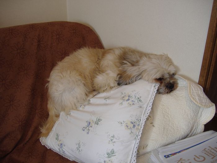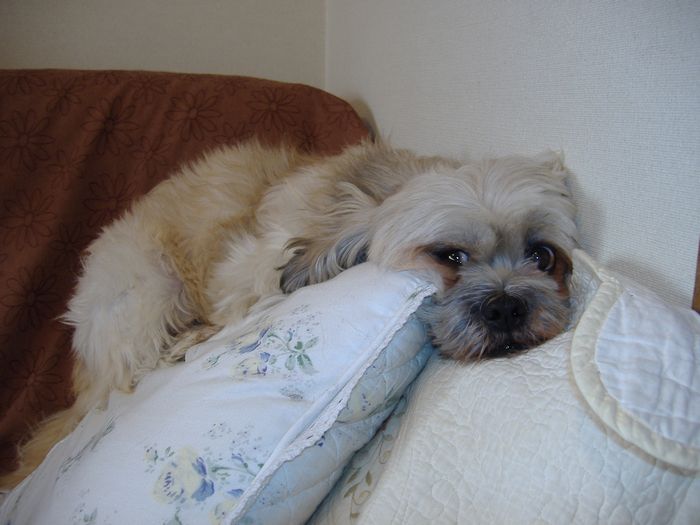 ところで我が家の主のラーくん。毛が伸びてきてボサボサ状態。本当はもっとまめにお手入れしないといけないのに、まったくしないラーPM。あっちゃんから「お手入れしないんだったら、もっと美容室へ連れていってあげて!」と、ここでもまた叱られている始末。(汗)「でもね、ボサボサのラーも、と~っても可愛いんだけど・・・本場チベットのラサを目指そうかとも思ってるし・・・」と言い訳のラーPM。(大汗)でも、本当に可愛いと思っている。ほんと、ほんと。(親バカ)^^