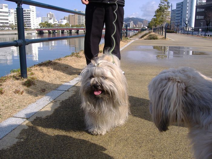 ちょうど一週間前の日曜日も比治山でのお散歩だったのだが、帰り道に皆実町の川沿いを走っているとあっちゃんがいきなり「あ、あ、あれあれ、ゴンちゃんだよ。」と、声を上げた。急いで車を止め、ラーを抱き上げてゴンちゃんファミリーを目指して疾走していった。「ゴンちゃ~ん、ゴンタく~ん。」