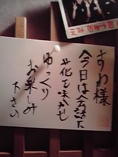 お店が、化粧室に歓迎メッセージを置いていてくれたなんて夢にも思わなかった。予約席においてあるならまだしも、不特定の人が利用する所にあるとは。お店に「やられた(嬉)」といった感じである。必ずしも利用するとは限らない所への配慮がとても嬉しく、お店の心遣いとコンセプトがよくわかった。「永遠家さん」、またお伺いいたします。^^