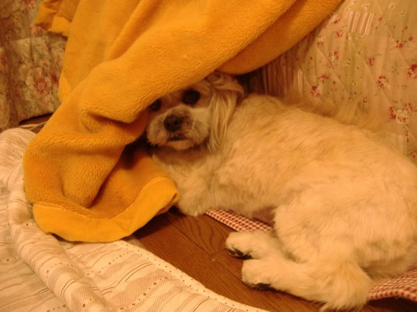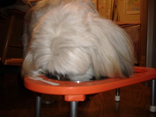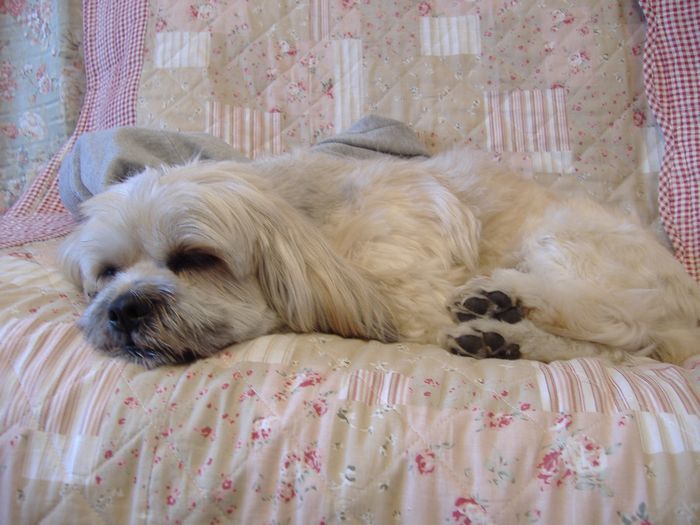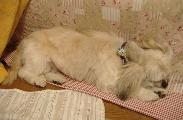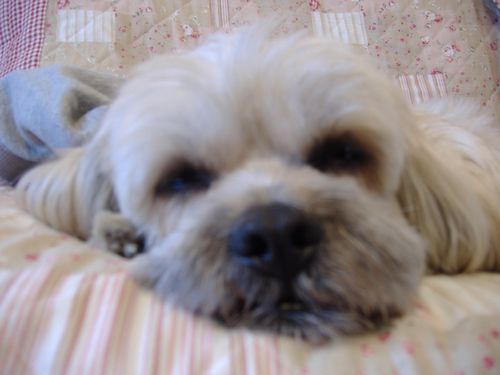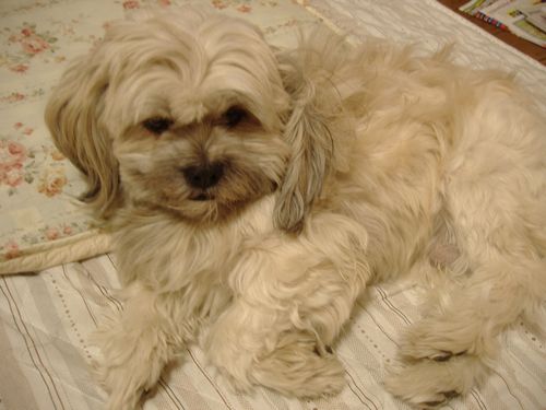 ずいぶんと毛が伸びて、ボサボサのラー。この姿も大好きなんだな~。何だか、いかにも「これぞ、チベットのラサだ~!」って感じで。そんな自分勝手な飼い主を思いっきり噛んでよし、ラー。^^