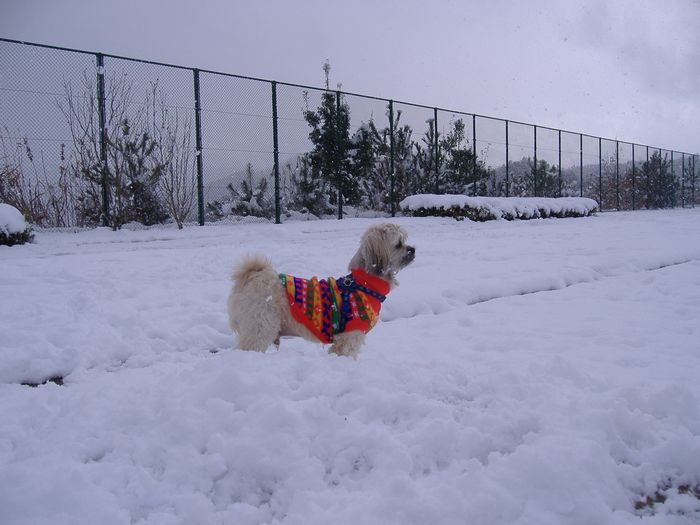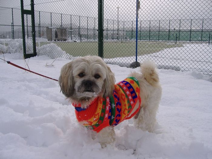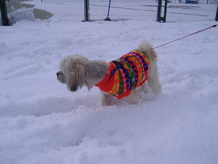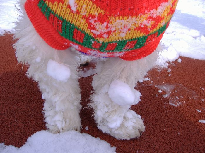 なんて言うのは、所詮無理な話。ラーは飛行機に乗れないし、乗せる勇気もなし。ましてペットホテルに預けることなんてできゃしない。だってカットのため美容室に預けるだけで体が引き裂かれる思いのラーPMですから。ということで、元日のお散歩はラーのいつものランニングコースである白銀の「伴西公園」でした。足にいっぱい雪球の飾りをくっ付けて、少々戸惑い気味のラーでしたが、楽しくも新鮮な年明けとなり大満足のラーPMでした。