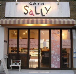 先週の土曜日(18日)の朝、ラーたちのお散歩でクッキー屋サリーの前を歩いていると約3名ほどの工事業者さんの姿が。よく見ればサリーのお店を作ってくれたメンバーのMさんがいた。そしてMさんの足元にはサリーの看板がありました。今頃になって看板かよぉ・・・仕方ないビンボーじゃけえのぉ~。(笑)