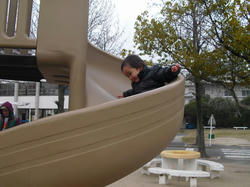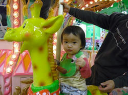 まずは、大芝にある「交通公園」へ。乗り物好きのいっくんだから、ここでゴーカートに乗せると喜ぶかと思いきや、それほどでもなかった。それよりも滑り台の方ではしゃいでいた。