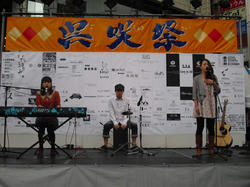 呉の駅近くの中通り商店街でのお祭りなのでそこそこの賑わいでしたが、音楽ステージの何とも寒いこと寒いこと。呉出身の男の子のステージもイマイチでしたがMebiusとなるともっと観客はひどかったです。あっちゃんとラーPM、その他4~5人の顔なじみのMebiusファンがステージの最前列にいた以外は、数えるほどの人たちが遠巻きにしている程度。