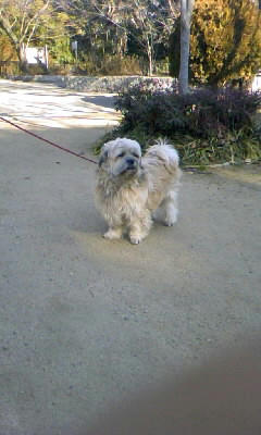 12日(土)の朝起きて外をみると、どんよりとした曇り空。「な~んだ、やっぱり雪は降らなかったんだ。」と、安心してゆっくりと朝食をとることに。朝食後、ラーたちの散歩に出かけようと外に出たところ、なんと猛吹雪。(Oh~,No~~!!大汗)ラーたちの散歩を予定してたマリーナを止めて急遽近くの江波山に変更。ミッキーは女の子でも野生児だから、悪天候もなんのその。猛吹雪の中で体を真っ白にしながらも予定の散歩を終了。しかし、ボサボサなワンコながらもお上品なラサ・アプソのラーはそうはいかない。(苦笑)散歩途中に固まってしまい動かなくなってしまった。結局、あっちゃんとサッサと車に乗り込んでミッキーの散歩終了まで待機となりました。猛吹雪とともに雷鳴も轟き、なんとも恐ろしい散歩でありました。(笑)