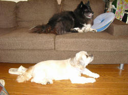 朝夕涼しくなり、ラーとくっついて一緒に寝るととても心地よい時期となってきました。今はまだラーの毛が短いのでラーの温かさが気持ちいいんですよねぇ~。その点、ミッキーはといえば、現在抜け毛のピーク。ちょっとでもくっついていると毛だらけ~~。それでもやっぱりミッキーもかわいいよ~。^^