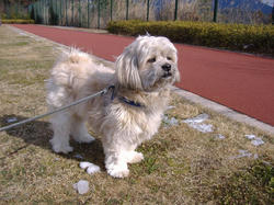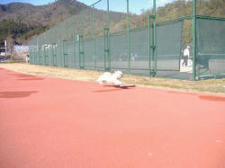 先週の日曜日(4日)、伴西公園にてラーくんの今年の初走り。年が変わってすっかり走り方を忘れたラーくん。「よし!ラー、おいで!!」と声をかけて走らせたのはいいけど、5メートルくらいで走るのを止めて横の植え込みを匂いはじめる始末。(苦笑)