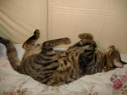 サリーはマークが大嫌いで、マークがサリーを追いかけ始めると大運動会のスタート。ニャン族の追いかけっこにこれまで何度もとばっちりを受けてきたラーが、「ワンワン!」と声を上げながら即座に追跡開始。たまらないのがラーPMとあっちゃん。寝ている私たちを踏むは蹴飛ばすは、そして部屋のものは倒すは落とすは・・・(汗)