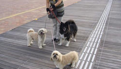 ラーPMが会場で観覧中、会場外で待っていたラー、ミッキー、あっちゃん・・・暑さと空腹に耐え切れず、ケータイにSOSが。(汗)ちょっと天気良すぎたね。(苦笑)最後の最後までラサズを応援できず会場を後にしました。しかし、momoさんと麗ちゃんにお会いできたし、多くの犬種見ることができたのでよかった。欲を言えば、多くのワンコとスキンシップを楽しみたかったというのが本音。でも、相手にとってこれほど迷惑な話はないかもね。(苦笑)今回のドッグショーを観て、我が家のミッキーは当然のことながら、ラーもあの場には似合わないことが判明。ラーくん、私たちはもうJKCを退会することにしませんか?(笑)