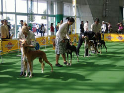 昨日、お友達のmomoさんから「ドッグショーに出ます。」というメールをいただき、急遽岡山へ出張決定。いつものラー、ミッキー、あっちゃんのメンバーで行ってきました。実はドッグショーなるもの、本格的に拝見するのは今回が初めてでありまして、はっきり言って圧倒されました。何といったら良いのかわかりませんが、ここへ来られる方々には私たちには無いワンコへの思い入れがあるといいますか・・・とにかくすごい。(驚)