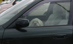 「車で待たされ、お怒りのラーさん。西飛行場にて」