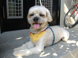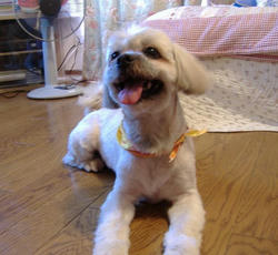 今回は久々に短くサマーカットにしてもらった・・・というより、されてしまったのかな?お願いしていたのよりずいぶんと短い感じ。まあ、暑い時期だからいいかなとは思うのだけど、直射日光に当たると逆に短毛の方が刺さるような暑さを感じるのではないかと心配になる。ラサなどの長い毛の犬種はそれなりに理由もあるかと思ったりもする。毛が長ければ長いで心配だし、短ければ短いで不安になるし・・・親バカ、犬バカというものは、全くしょーもないものです。σ(^_^;)